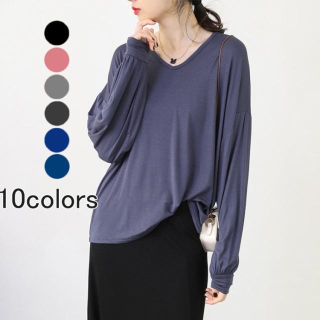 | 商品名 | Tシャツ トップス 長袖 無地 レディース M~XL大きいサイズ 春夏 着まわしできる定番ゆったり オリジナル Vネック UVカットカットソー シンプル ベーシック コットン おしゃれ 上品 フェミニン 着痩せ インナー |