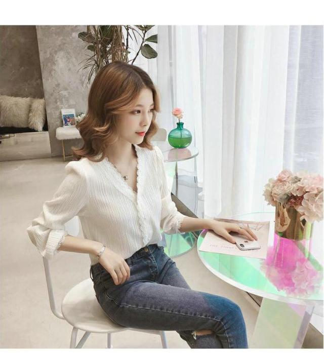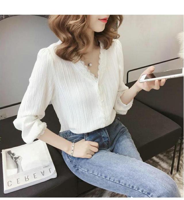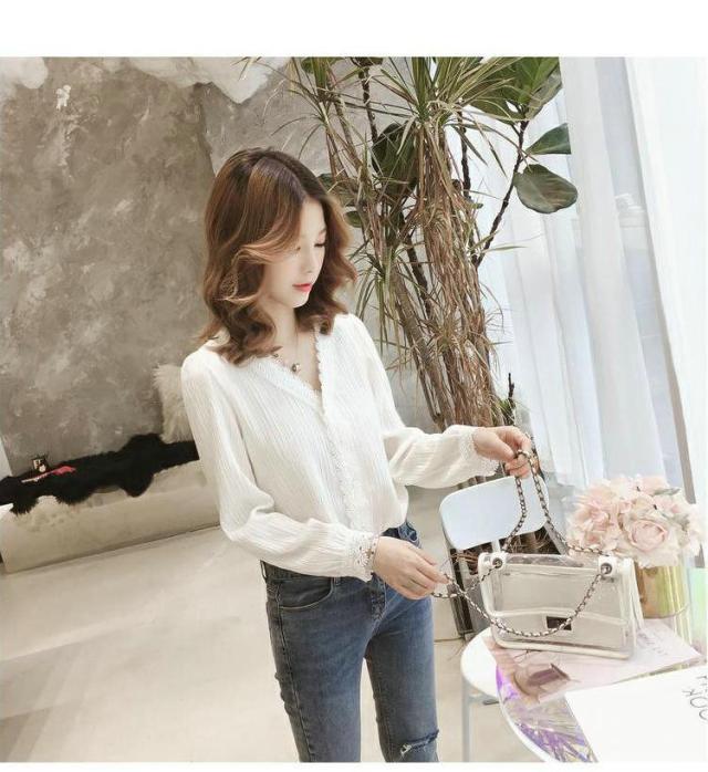 めちゃ可愛いレースシャツ 長袖 無地 レディース 夏 ブラウス ワイシャツ ゆったり S~2XL大きいサイズ ベーシック 体型カバー 女性 シンプル ビジネス 制服 フォーマル Vネック トップス フェミニン 優雅 エレガント 白い リクルート 就職活動
