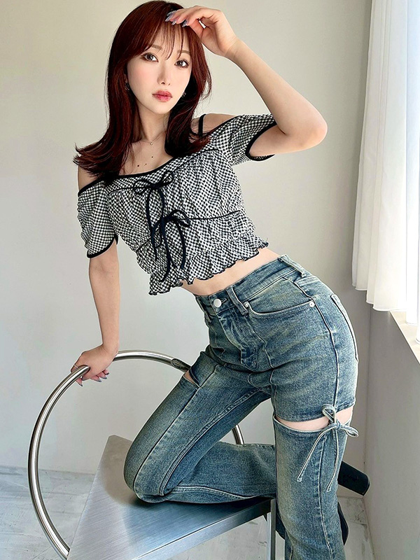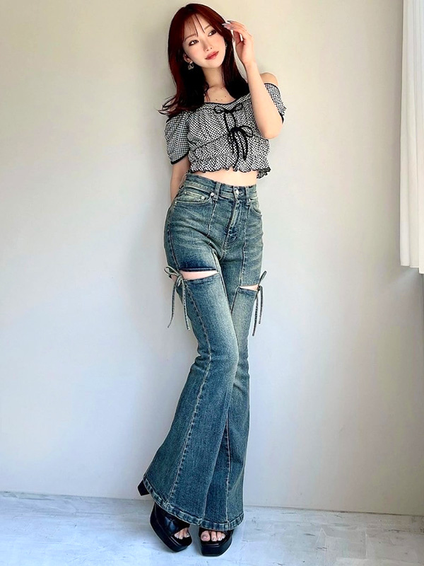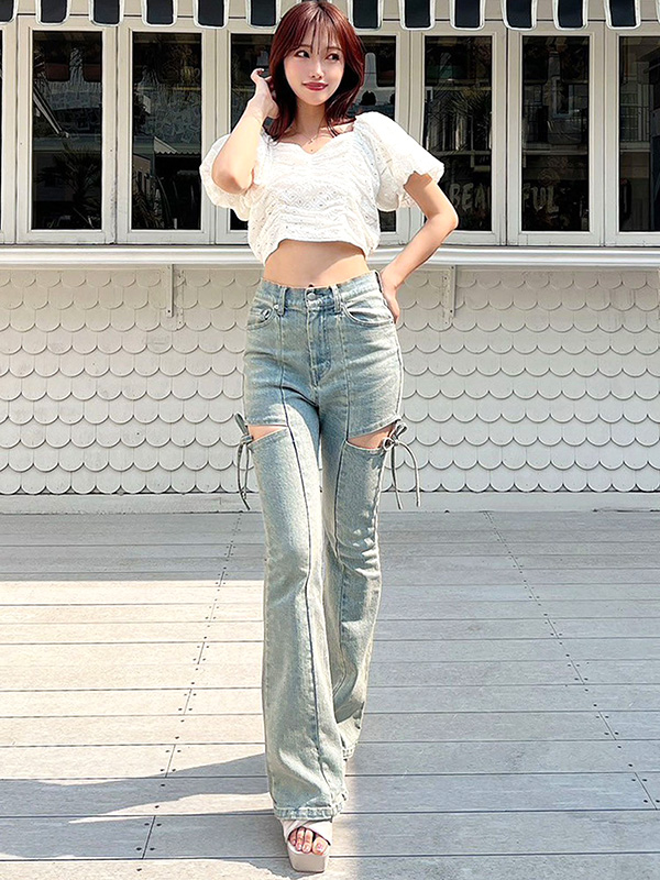 RESEXXY Cut Out Ribbon Denim Pants