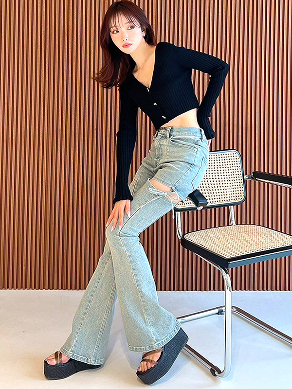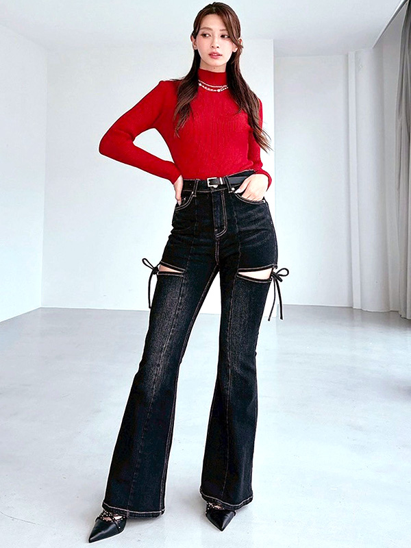 リゼクシー カット アウト リボン デニム パンツ