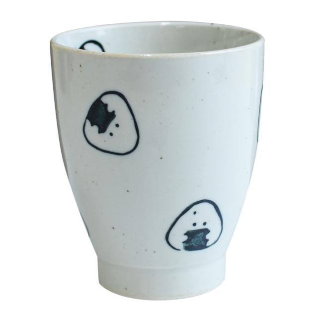 九州の波佐見焼で、おにぎりさんデザインのカジュアルな湯呑みです。食後にほっと一息つきたい時や、お客様用にもおすすめです。