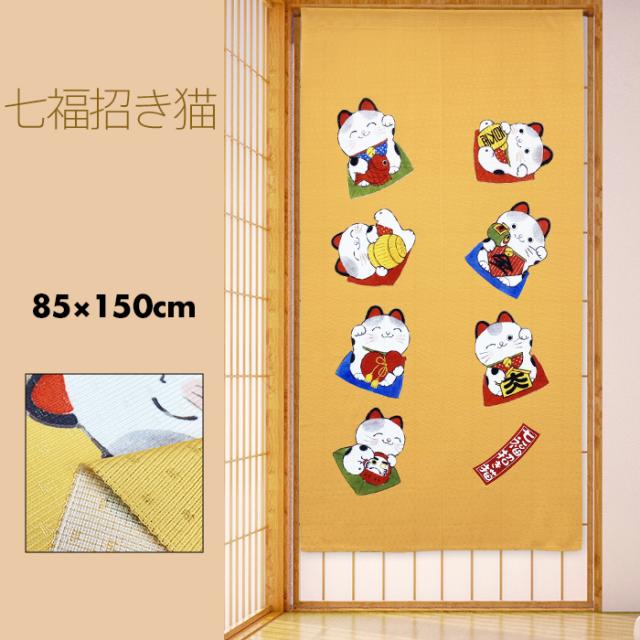のれん 暖簾 おしゃれ カーテン 間仕切り 仕切りカーテン 目隠し 和風 和柄 和モダン 和風モダン 和風暖簾 日本 招福 幸運 招き猫 猫 ねこ にゃんこ 七福招き猫 85×150cm
