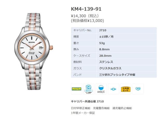 在庫有り【送料無料】【ポスト投函】CITIZEN・シチズン時計 REGUNO・レグノ ソーラーテック(レディース) KM4-139-91 / ソーラー充電 母の日ギフト (ラッピング無料)