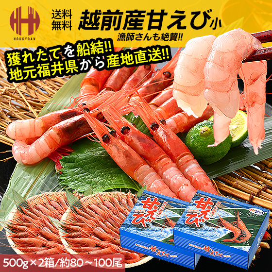 甘エビ 甘えび 子なし 小 刺身 1kg 500g×2箱 約80〜100尾 冷凍 越前甘エビ 福井県 お歳暮 御歳暮 ギフト