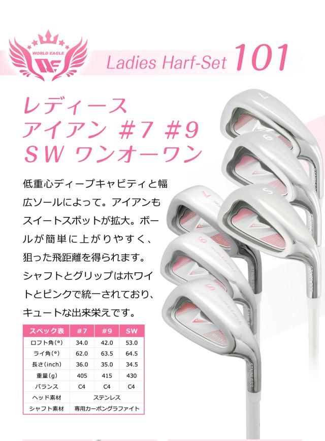 WE-J-101-NV ハーフセット レディース 右用 ピンク+FL-01ホワイトアクアバッグ ゴルフのある素敵な毎日を過ごそう!