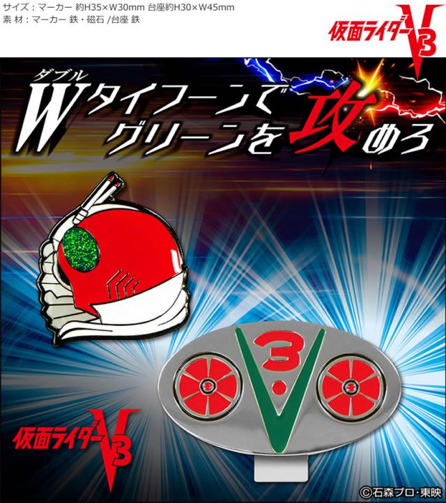マーカーには仮面ライダーV3、台座には力と技のダブルタイフーン変身ベルト!