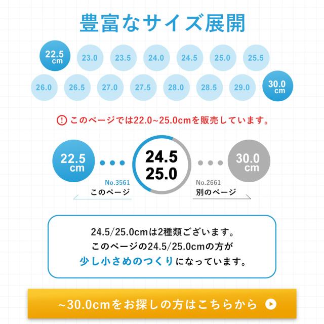 0.5cm刻みなので、足にピッタリのサイズが見つかります。