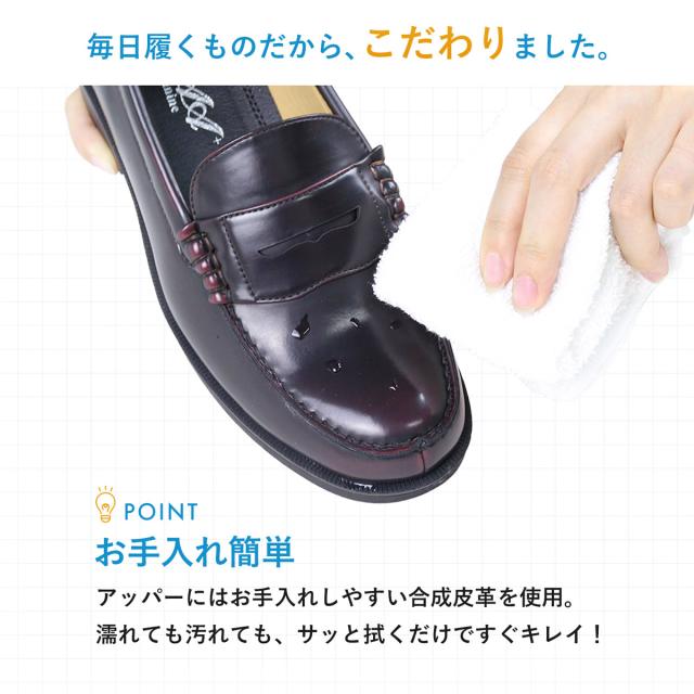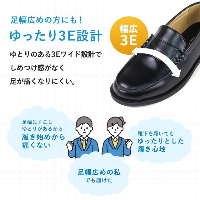 通学用スクールローファーはシンプルなシルエットなので学生服にピッタリ。