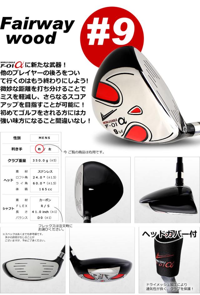 春のグリーンキャンペーン ワールドイーグル ゴルフ メンズ F-01 フェアウェイウッド ステンレス 9番 右用 フレックスR S FW カーボンシャフト