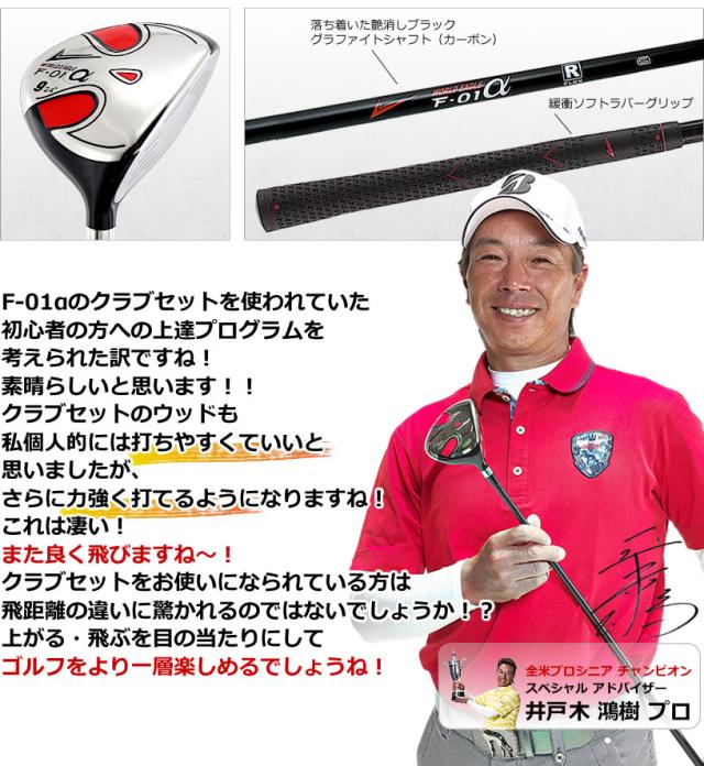 「F-01αのクラブセットを使われていた初心者の方への上達プログラムを考えた素晴らしいクラブシリーズですね!!標準でクラブセットにあるウッドも私個人的には打ちやすくていいと思いましたが、この新シリーズのクラブは、さらに力強く打てるようになりますね!