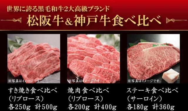 世界に誇るブランド牛!松阪牛&神戸牛食べ比べ!迫力満点目録ギフト!