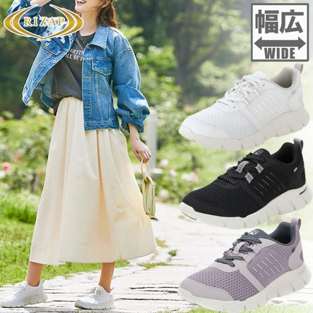 4E幅 幅広 ワイド ラクウォーク レディース RIZAPコラボアイテム ライザップ ウォーキングシューズ スニーカー シューズ ローカット 軽量 紐靴 ホワイト 白 ブラック 黒 パープル 紫 送料無料 RAKUWALK RL-9212