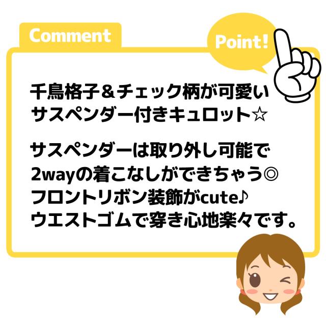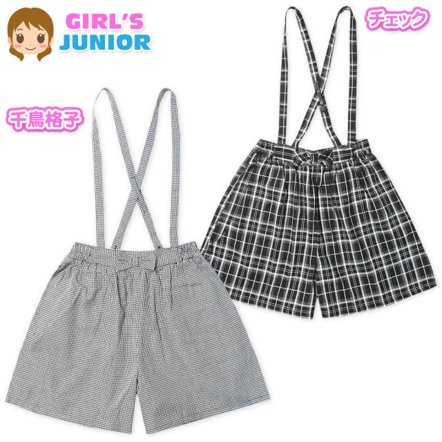 【送料無料】女児 ジュニア サスペンダー付き キュロット 千鳥格子 チェック リボン 2way ウエストゴム nw-1168【メール便対応】