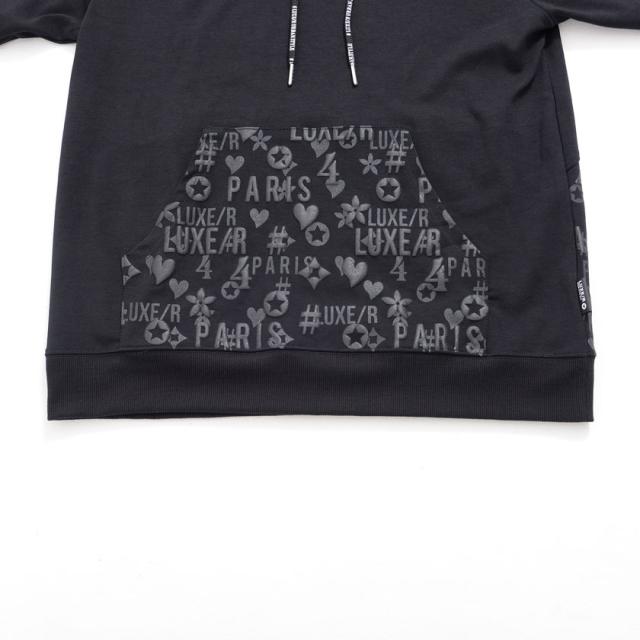 SILVER BULLET(シルバーバレット)にLUXE/R【ラグジュ】切り替え総柄ロゴプリントパーカーが入荷しました。柔らかなポンチ素材を使用したプルオーバーパーカー。