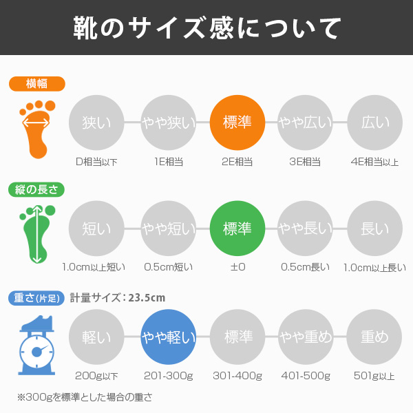 甲高、幅広の方→「0.5cm大きめ」