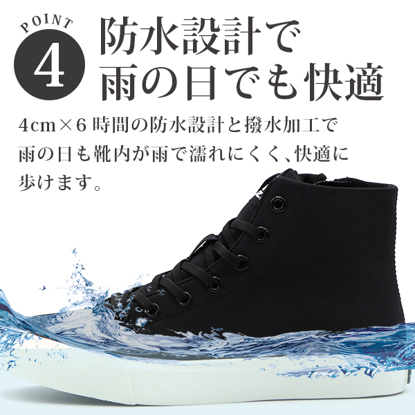 4cm×6時間防水設計で雨の日も靴内が濡れにくく、快適に歩けます。