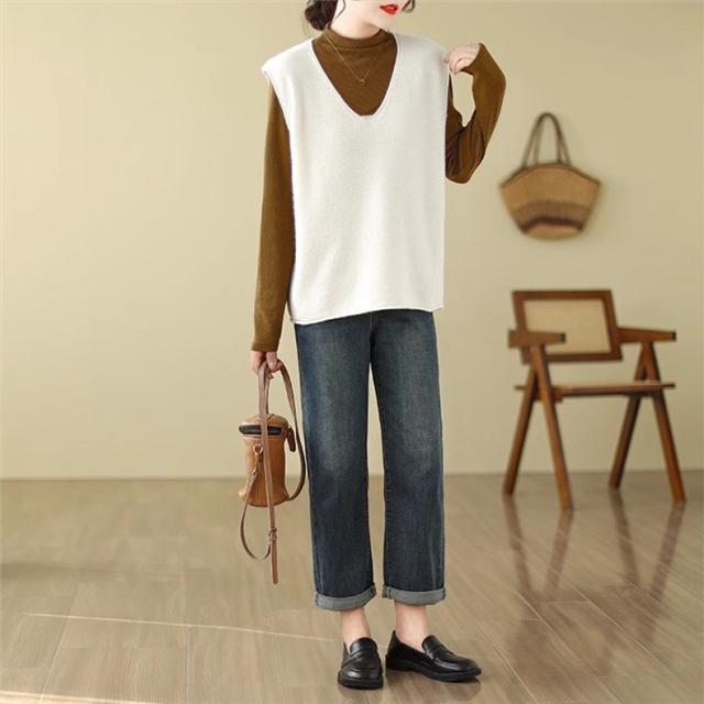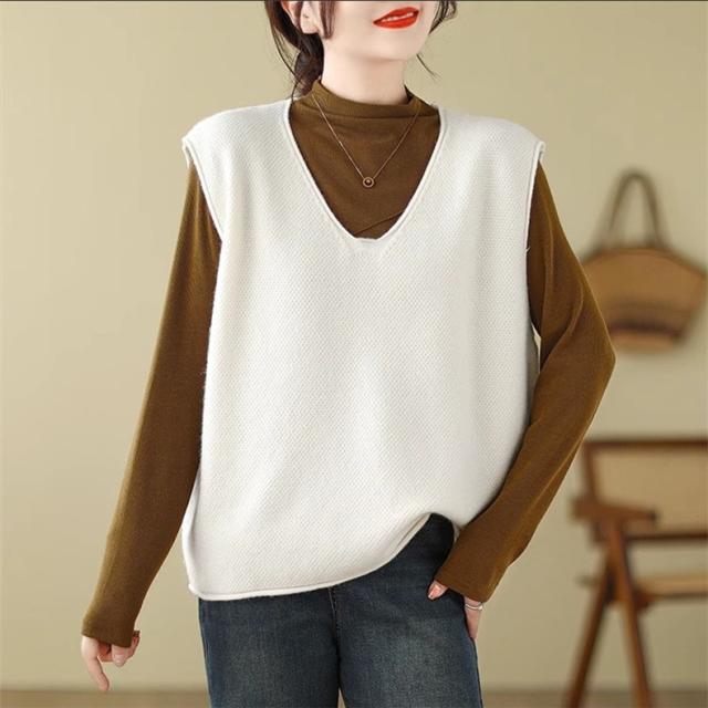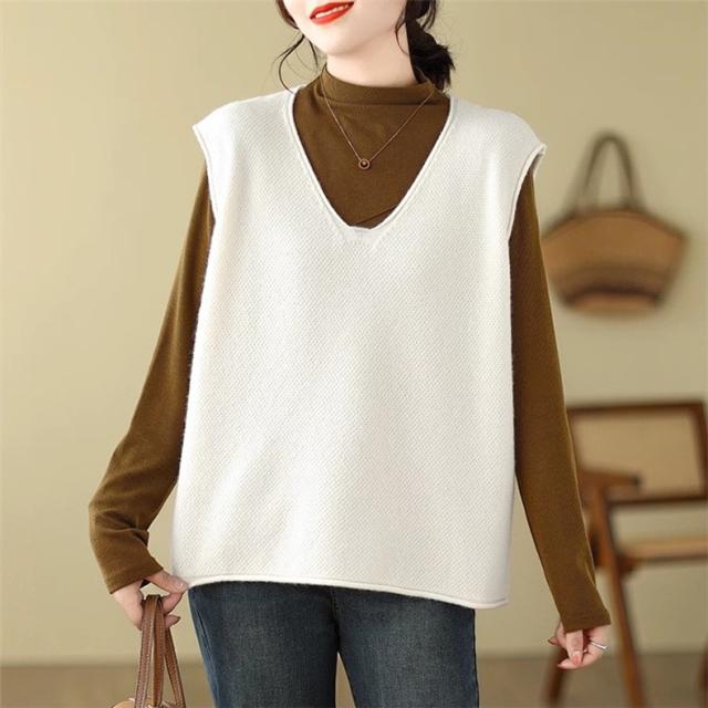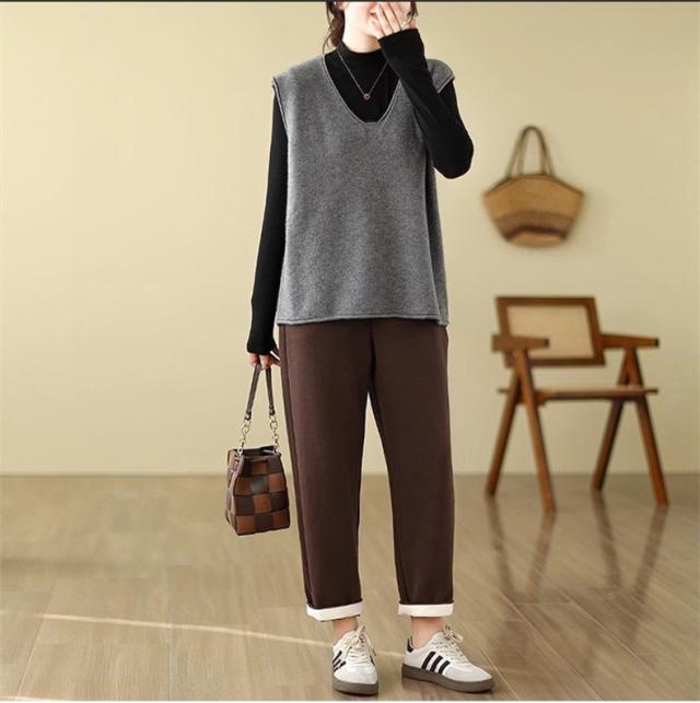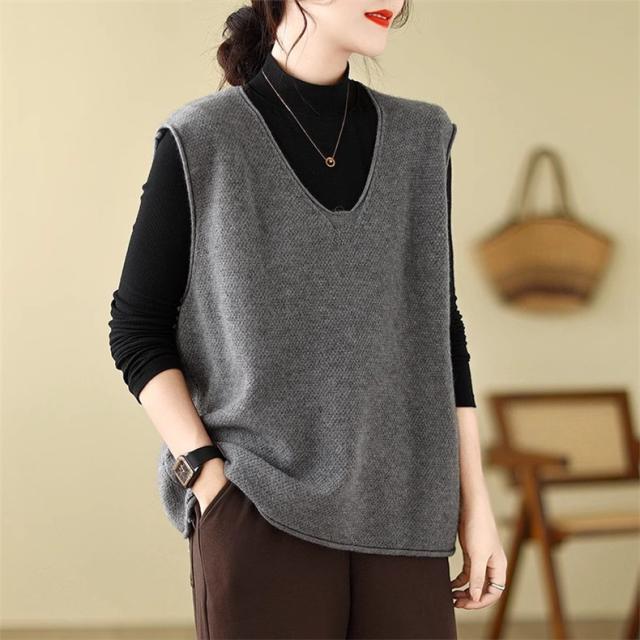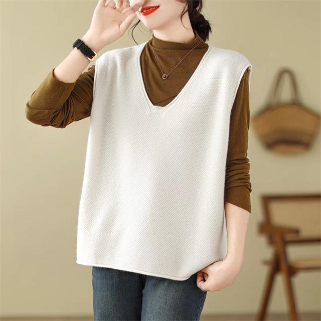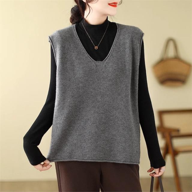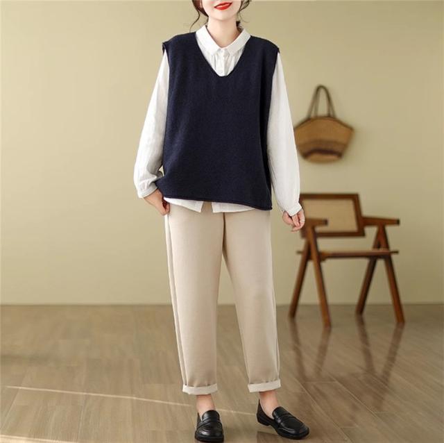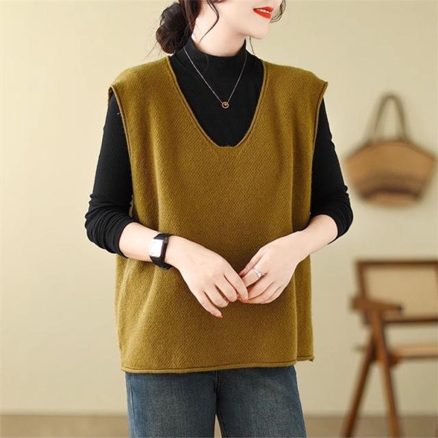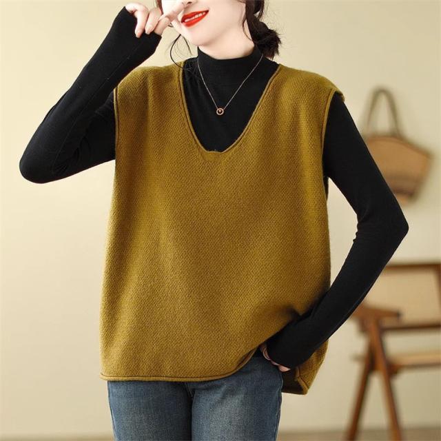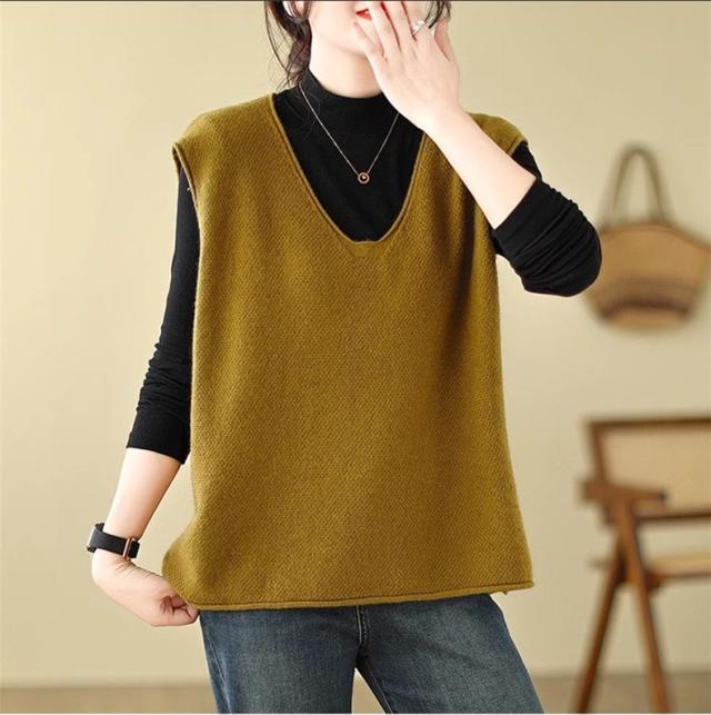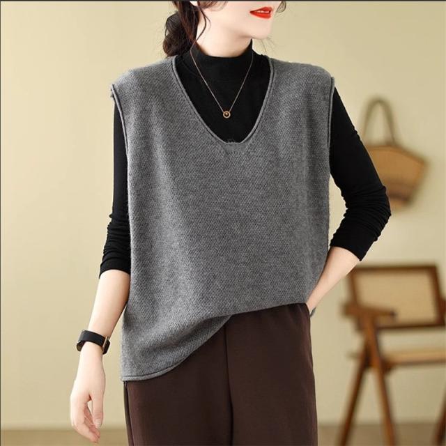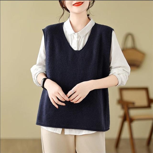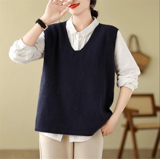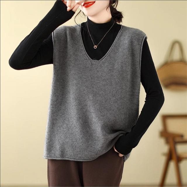 ニットベスト レディース レイヤードコーデに トップス プルオーバー その日の気分で着回しパターン自由自在◎ ゆったりとしたシルエット 優秀アイテム