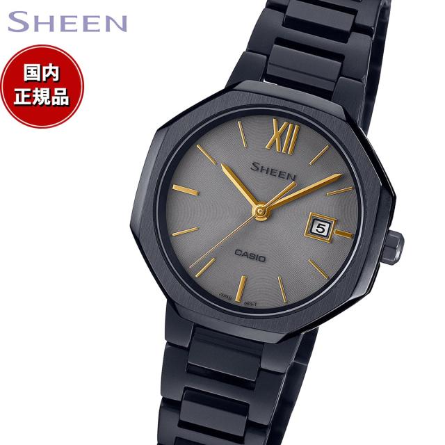 クールなブラックにゴールドを合わせた、華やかなモデルです。ブラックIP処理を施した質感の高いケースとバンドに、ゴールドカラーのインデックス・針を合わせることで煌びやかさを加えました。ベースモデルには、丸ダイアルに八角形のケースを合わせたフェイスがシャープでエレガントなSHS-4529を採用しています。機能面では、定期的な電池交換の手間を軽減するソーラー充電システムや日付表示を搭載。また、傷がつきにくい高硬度の反射防止コーティングサファイアガラス、5気圧防水機能も備えています。秋冬ファッションをエレガントに演出する、Newモデルです。【カシオ シーン CASIO SHEEN 2023 新作】