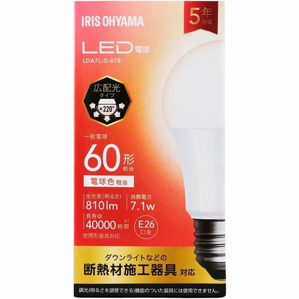 IRIS OHYAMA アイリスオーヤマ LED電球 E26 広配光 60W 電球色 LDA7L-G-6T8