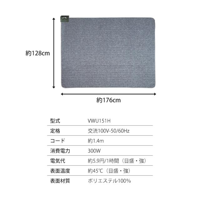 電気カーペット 1.5畳 ホットカーペット 本体 1.5畳用 長方形 128×176cm 1畳半 暖房器具 暖房 保温 省エネ 電気マット ホットマット 寒さ対策 ダニ退治 ダニクリーン コンパクト 接結製法