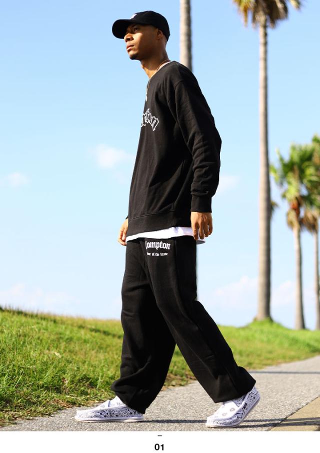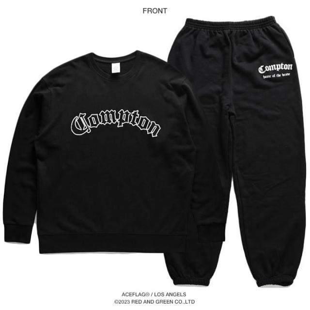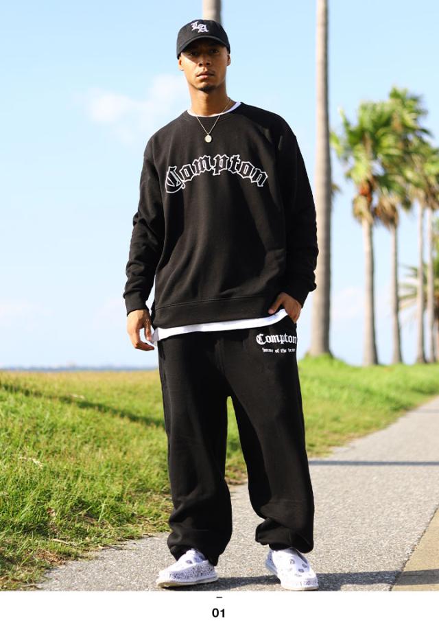 N.W.A.を輩出し、Straight Outta Comptonの舞台としても知られている「Compton」をドロップした(上)がトレーナ—、(下)がスウェットロングパンツの上下セット。