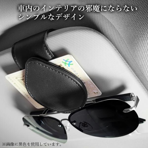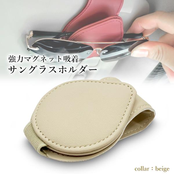 車 メガネ ホルダー サングラスホルダー おしゃれ マグネット 収納 サンバイザー 車用 コンパクト PUレザー ベージュ (管理S) 送料無料