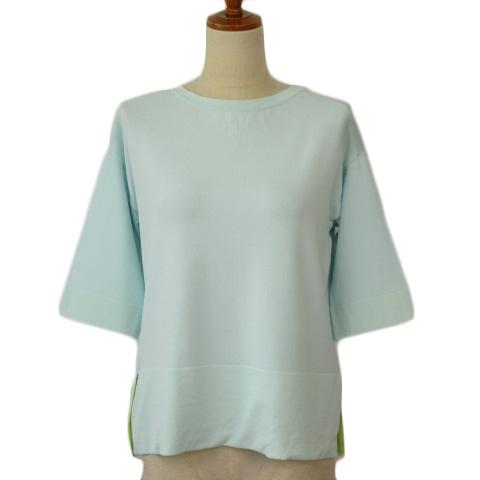 【中古】ドゥクラッセ DoCLASSE 洗えるUVニット 配色プルオーバー L 青 ブルー レディース