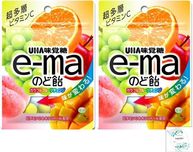 e-maのど飴カラフルフルーツチェンジ(2袋)+ Topsellerオリジナル開封日シールセット おまけ付き【在庫あり】