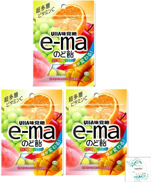 e-maのど飴カラフルフルーツチェンジ(3袋)+ Topsellerオリジナル開封日シールセット おまけ付き【在庫あり】