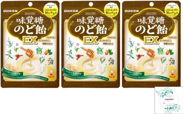 味覚糖のど飴EX(3袋)+ Topsellerオリジナル開封日シールセット おまけ付き【在庫あり】