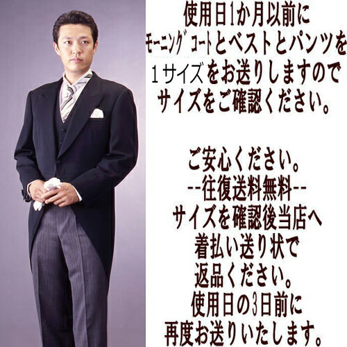 オプション 事前に使用日の1か月以前に1着のみ試着できるレンタルモーニングお試しサービス往復送料込※必須レンタルモーニング10点セットのページで希望サイズをご注文ください【レンタル】