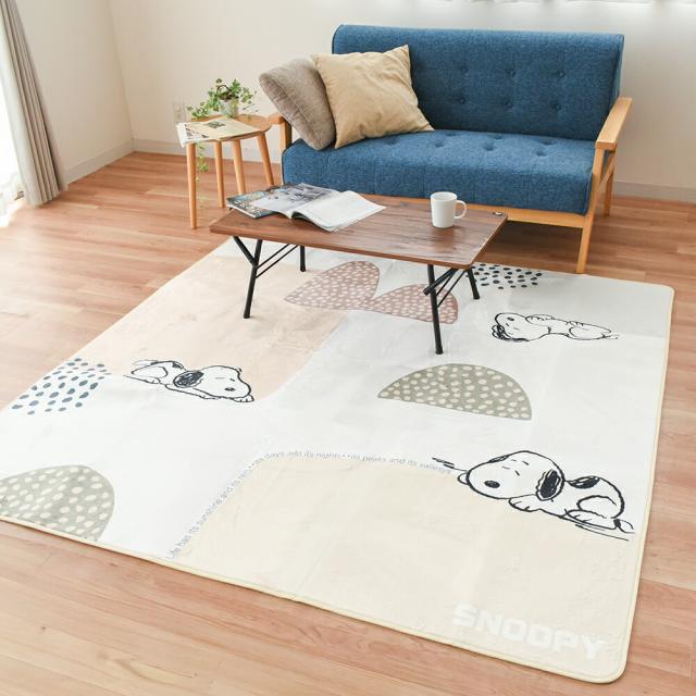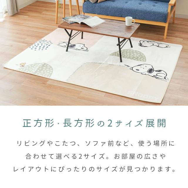 [keyword | スヌーピー フランネルラグ キャラクターラグ 丸洗いOK 洗濯機対応 滑り止め付き ホットカーペット対応 床暖房対応 クッション性 ウレタン入り 薄手 やわらか 肌触り良い 癒しデザイン インテリアマット リビング用 子供部屋用 ペット対応 軽量 長方形 正方形 2サイズ展開]