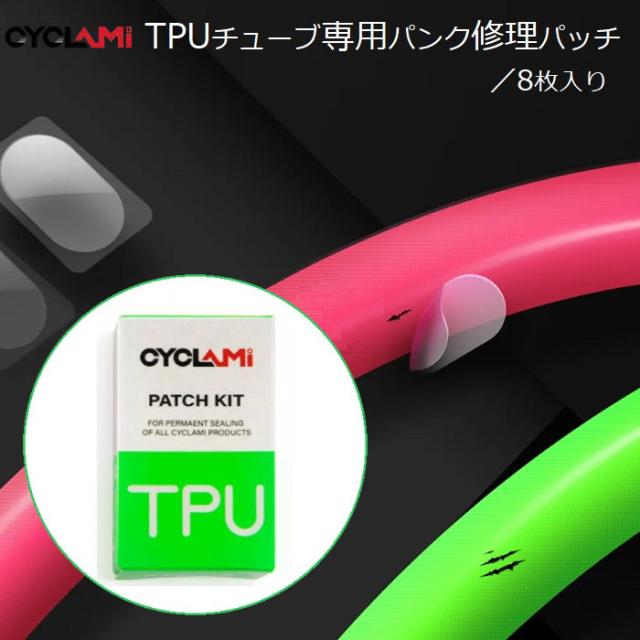パンク修理パッチ Cyclami TPUチューブ専用パッチ 8枚+クリーナー パンク修理 グルーレス 糊不要 パンク修理パッチ パンクキット スーパーパッチ 自転車 サイクリング ロングライド ロードバイク クリンチャー クロスバイク ミニベロ MTB ピスト チューブ