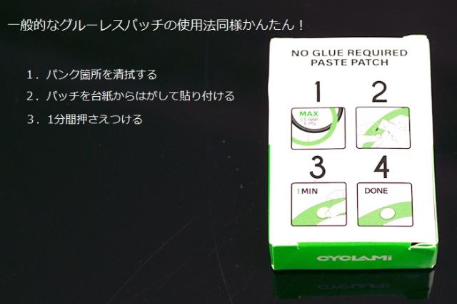 ・クリーナーでパンク箇所をふき取りしてからパッチを台紙からはがして貼り付けるだけ。