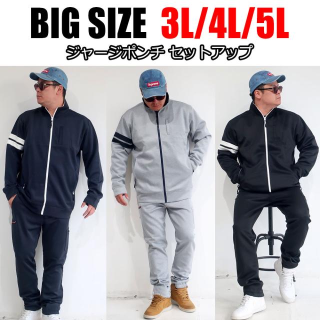 メンズ 大きいサイズ セットアップ 3L 4L 5L ビックサイズ キングサイズ ジャージポンチ スウェット 黒 グレー ブラック ネイビー 上下 おしゃれ 大人 オススメ 30代 40代 50代 ルームウエア 部屋着 おうち おうちコーデ 父の日 プレゼント ギフト