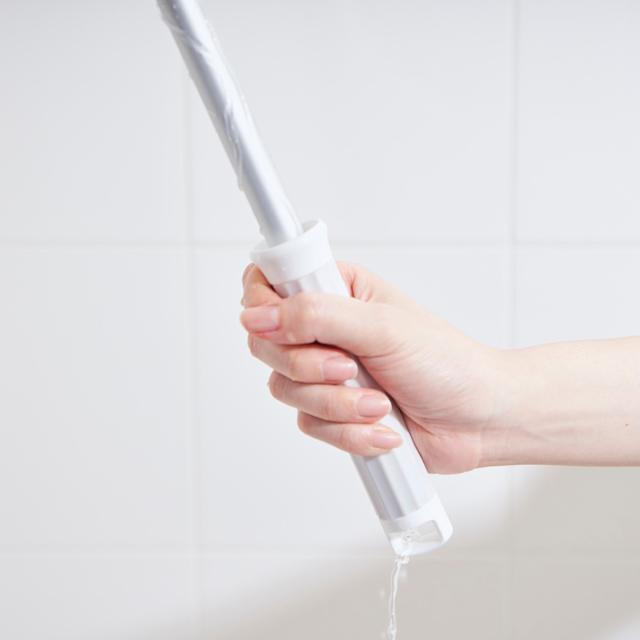 外壁などを磨く際にブラシを立てて使っても、柄を伝った水や洗剤などがグリップ内部を通り抜けるので、手が濡れにくい仕様になっています。