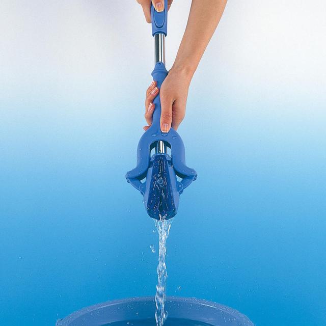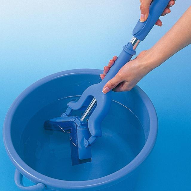拭き取った水は、押しボタンを押しながらグリップを引くだけでスポンジの端まで一気に絞れます。