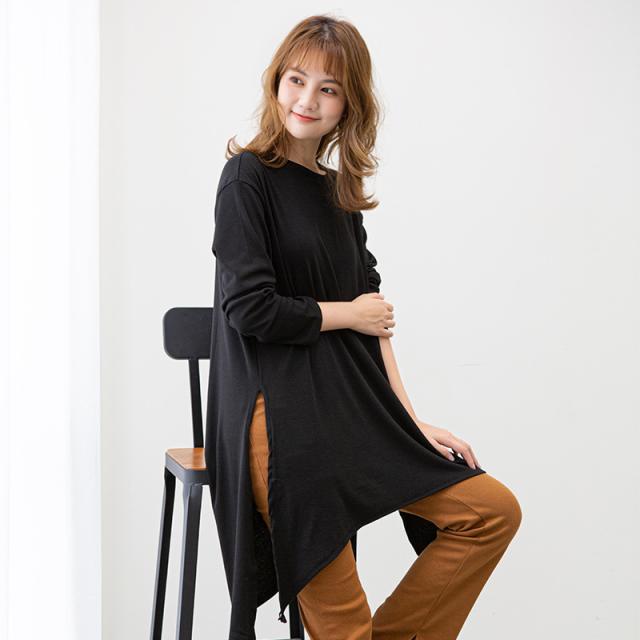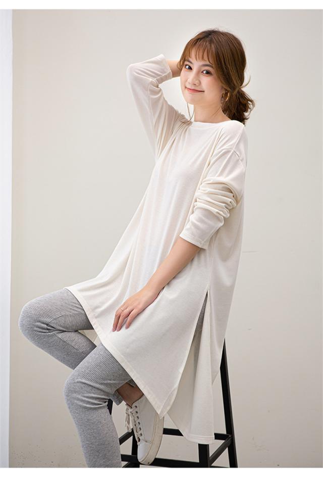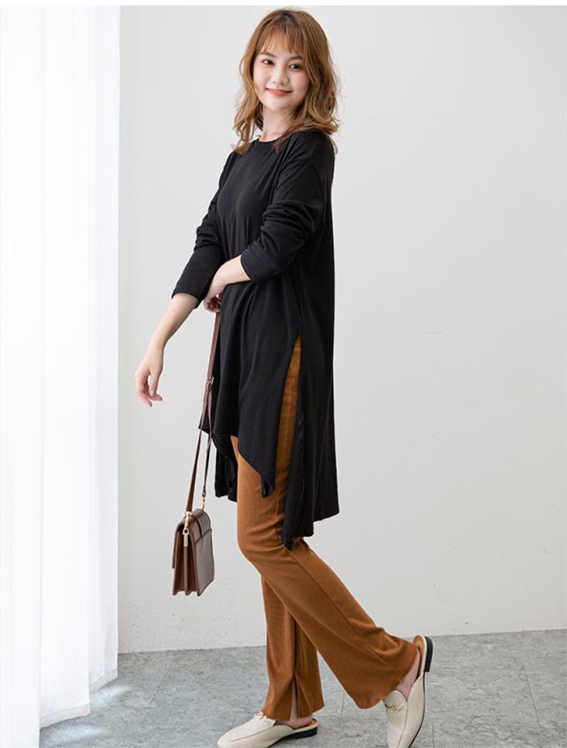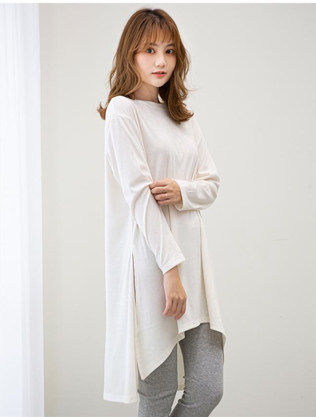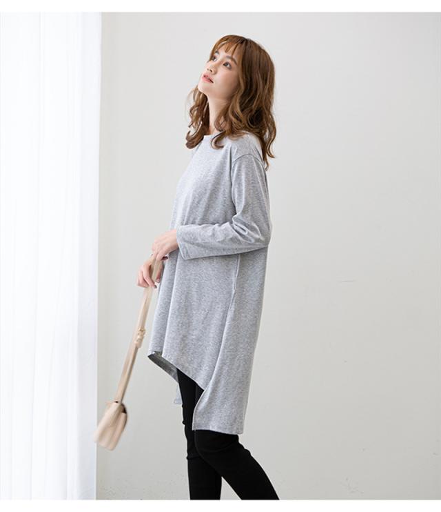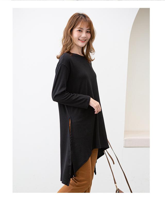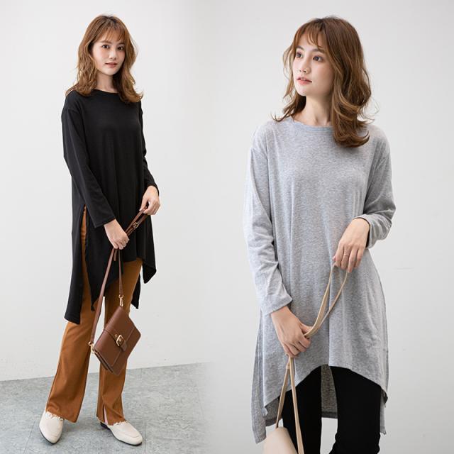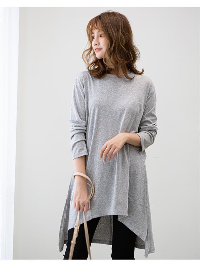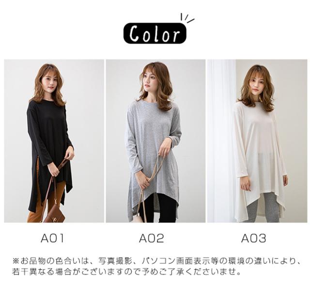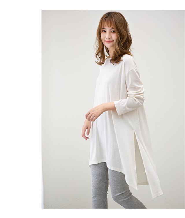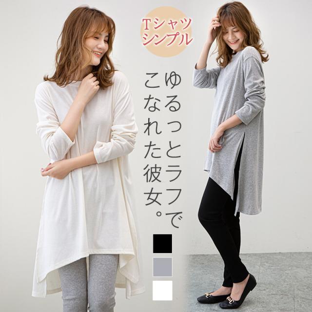 カットソー レディース トップス Tシャツ スリット ロンティー 春 ロンT 長袖 tシャツ ロング シンプル 通勤