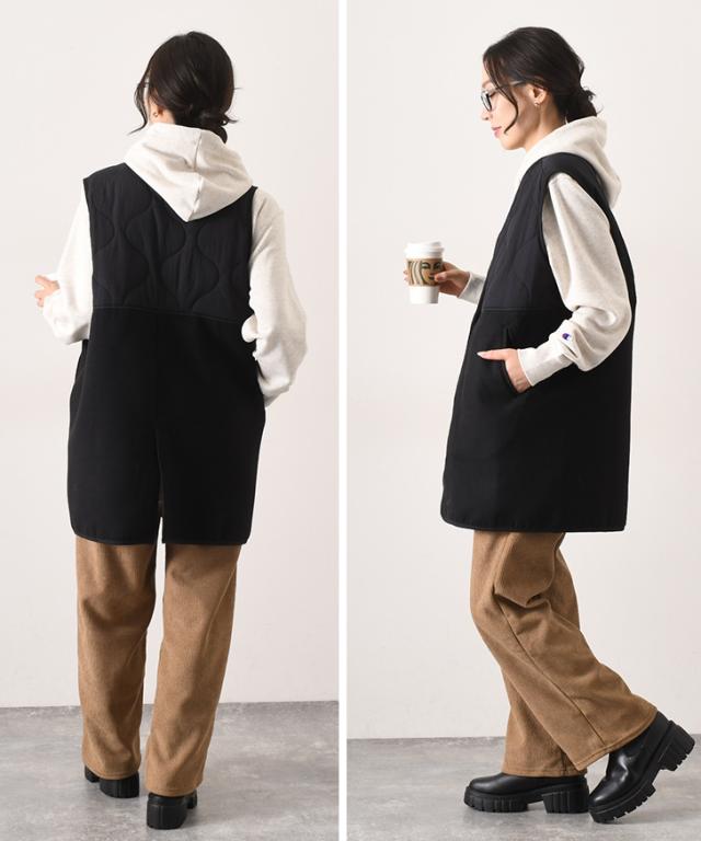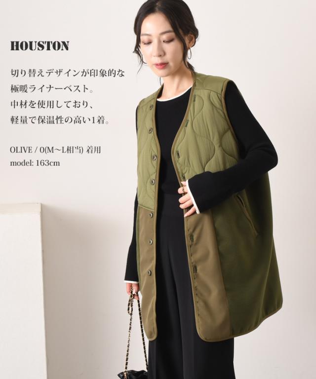 新作 HOUSTON ヒューストン ベスト レディース ブランド ロングベスト キルティング アウター 中綿 防寒 暖かい 起毛 ゆったり 保温