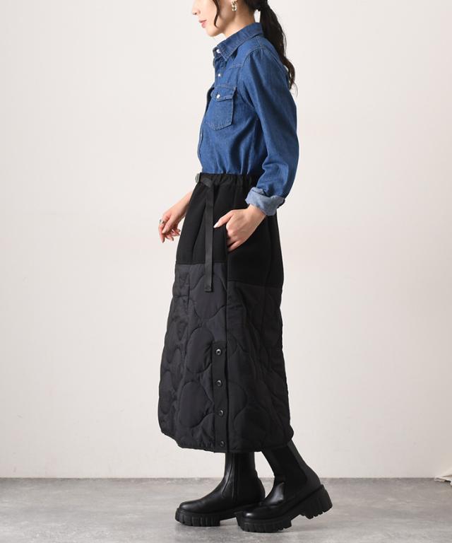 23HL054 REMAKE LINER SKIRT 重ね着 レイヤード 巻きスカート風 ラップスカート風 エコダウン ガチャベルト メンズライク フリース パイピング 大きめ 大きいサイズ ぽっちゃり 妊婦 マタニティ ロング丈 異素材ミックス 異素材mix リメイク風 配色 バイカー ワントーン 通勤 通学 オフィス OL ママ 母 キャンプ レジャー 散歩 お出かけ 韓国ファッション ストリート 20代 30代 40代 50代 古着風 アメカジ ロングシーズン 秋冬 秋 冬 春 軽い 軽量 ワンマイル 部屋着 ルームウェア クリスマス プレゼント ギフト 贈り物 お祝い 誕生日 バースデー ワーク 作業着 作業服 おしゃれ 旅行 トラベル 雪 雨 雨の日 撥水 はっ水 美脚 脚長 膝下 ひざ下