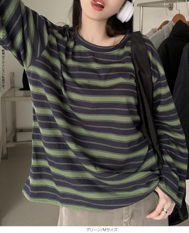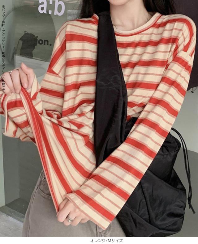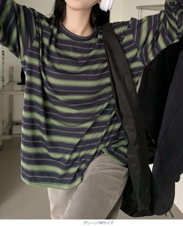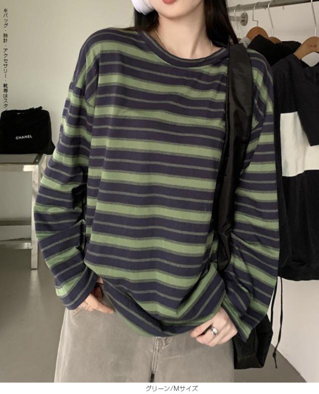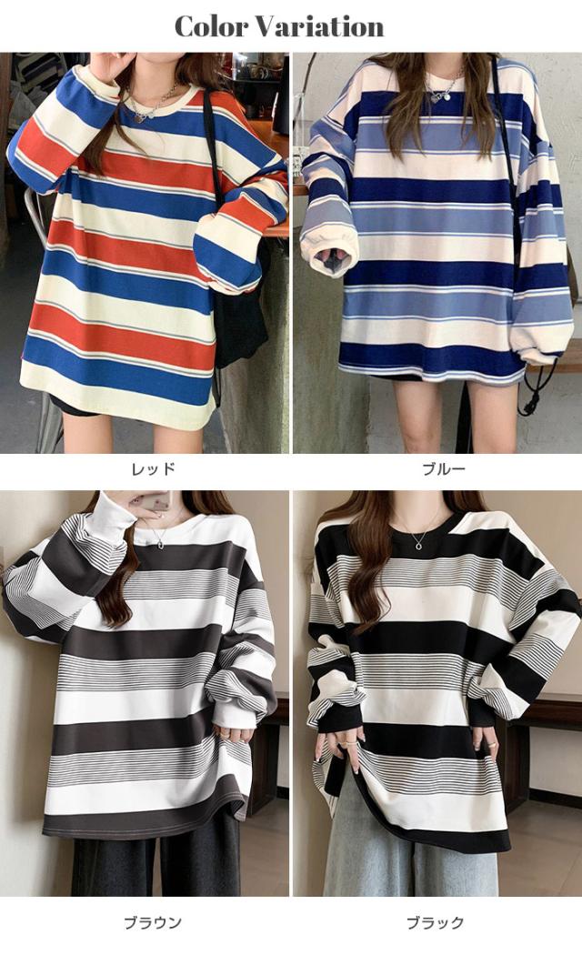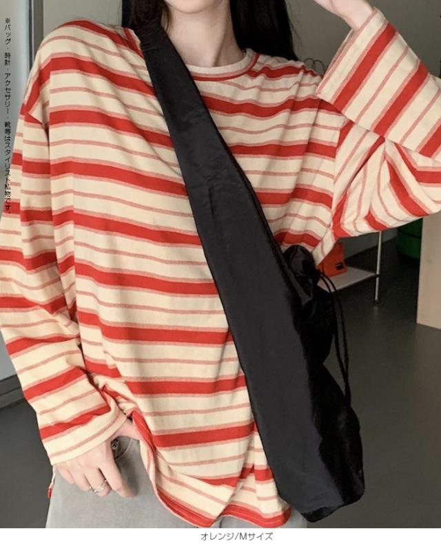 33%OFFクーポン!XL~XXLサイズ追加★ロンT レディース ボーダー マルチボーダー カットソー オーバーサイズ 大きいサイズ ゆったり ロング カジュアル 韓国 長袖 赤 グレー 黒【 マルチボーダーオーバーサイズTシャツ 】 ダークエンジェル 送料無料 春新作