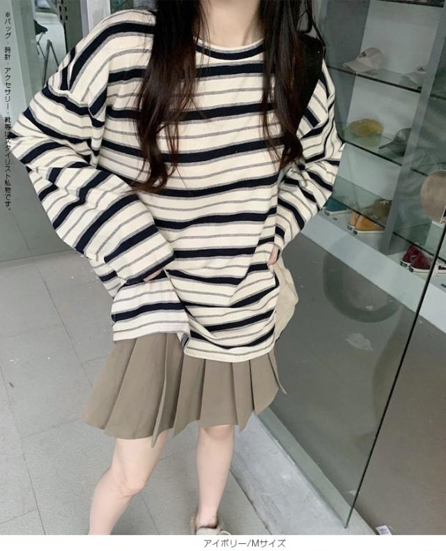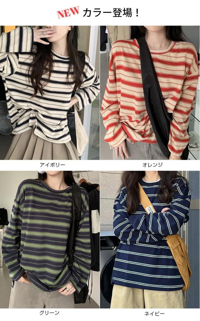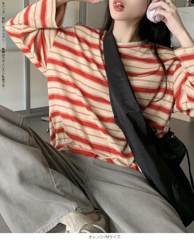 【 マルチボーダーオーバーサイズTシャツ 】 ビッグシルエットでこなれるマルチボーダーがかわいいロンT オーバーサイズながらも薄手の素材なのでインナーとしても◎ シンプルボトムを合わせるだけでも今っぽカジュアルコーデが完成します。 ゆるっと可愛く着映えが叶う、主役級の一枚です。 |