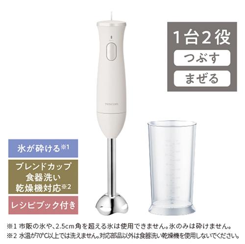 テスコム TESCOM ハンドブレンダー つぶす、まぜる、「1台2役」 手軽で簡単&時短調理 金属製 レシピブック付き┃TBL10A-W
