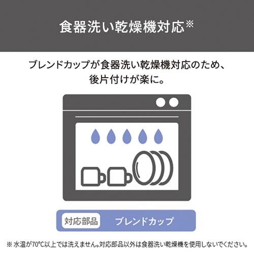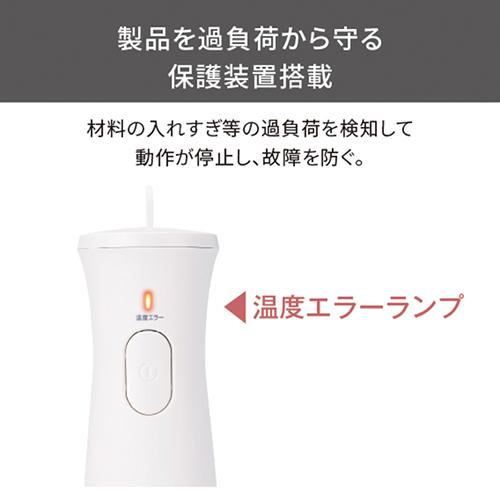 つぶす、まぜる、「1台2役」で料理の幅が広がる。 忙しい毎日に寄り添う、手軽で簡単&時短調理。![]() ■調理の下ごしらえも簡単。※1 ブレンダーでの氷対応も可能になってドリンクのレパートリーも広がります。※2 目盛りがある容量700mlの専用ブレンドカップ付きです。 ※1 ブレンダーの使用時間は合計1分まで ※2 市販の氷や、2.5cm角を超える氷は使用できません。氷のみは砕けません。 ■効率よく材料をつぶす4枚刃は、鍋に直接入れられるのでスープ作りもお手軽に。金属製なので臭いや色移りなく清潔に使えます。 (調理目安は直径18cmの鍋に深さ3cm位の量です。) ※3 粗熱をとってからご使用ください。 ■10倍粥、茹でたにんじんなどの野菜ペーストで作る離乳食や、フルーツを使ったヘルシーなドリンクメニュー、ホームパーティに喜ばれそうなメイン料理やデザートなど、毎日楽しめるバリエーション豊かな全16レシピを収録したレシピブックが付属します。 ※本レシピブックは、TBL10A、TBL20A、TBL30Aの共通の付属レシピです。 ■しっかりと握りやすい、くびれを作った新形状の本体はわずか560gの軽量設計です。人差し指と中指が程よくフィットするスイッチは軽い力でも押しやすく、作業効率がアップします。 ■アタッチメントのブレンドカップは、食器洗い乾燥機対応で後片付けが簡単に。 ※4 水温が70℃以上では洗えません。対応部品以外は食器洗い乾燥機を使用しないでください。 ■食材の入れすぎや定格時間を超えての連続使用など、過負荷を検知するとランプが光ってお知らせします。動作を自動停止し故障を未然に防ぎます。※7 使用可能な温度になると自動復帰し、ランプは消灯します。 ※7 ランプが点灯した際には、必ず電源プラグをコンセントから抜いてください。 ■調理中に片手がふさがっている時や、爪の長い方やネイルをしている方でも、レバーを押すだけでプラグを簡単に楽に抜くことができます。クイックコードバンド付きで電源コードがすっきりまとまります。 ■肉 / 魚 / パンなどの生地 / 食材以外のもの 【固いもの】市販の氷 / 冷凍した食材 / コーヒー豆 / 乾物(乾燥大豆・煮干しやかつお節)など 【ねばりけの強いもの】じねんじょ・いちょういも など 【水分の少ないもの】いも類(じゃがいも・さつまいも など)かぼちゃのマッシュ など ※ ペーストにするときは、分量(重さ)の2/3以上の液体と混ぜてください。 ※ 使用時間は合計1分までです。 ![]() ■サイズ:高さ / 348mm 幅 / 63mm 奥行き / 63mm(本体+ブレンダー) ■質量:560g(本体+ブレンダー) ■消費電力:200W ■付属品:ブレンドカップ・レシピブック ■定格時間(連続使用可能時間):ブレンダー(つぶす・まぜる):1分 ■容器容量:ブレンドカップ:700ml ■機能:つぶす/まぜる・電源スイッチ(プッシュ式):「ON-OFF」 ■カラー:ホワイト ■コード長:1.7m ■パーツ:ブレンダー(501754)、ブレンドカップ(501753)、レシピブック(501755) ■保証期間:1年 ■主材料:本体:ABS ブレンダー:ABS/SUS304 |