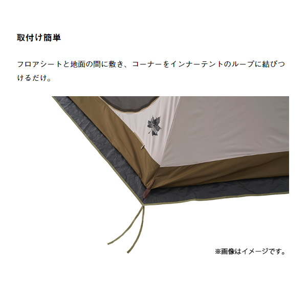 フロアシートと地面の間に敷き、コーナーをインナーテントのループに結びつけるだけ。