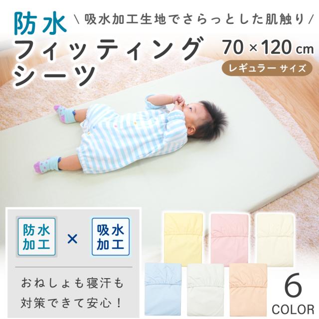 ベビー 防水 フィッティングシーツ 70×120cm レギュラーサイズ 吸水加工 無地 アイボリー /クリーム/サックス/ピンク/グレー/ベージュ 赤ちゃん 洗い替え 敷カバー 出産準備 四隅ゴム un doudou メール便発送(ポスト投函) NP