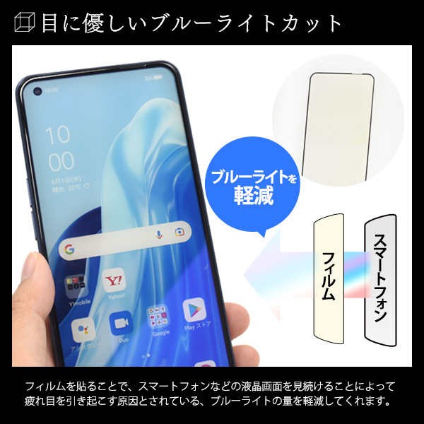 液晶保護フィルム OPPO Reno9 A用 ブルーライトカット 全画面保護 ガラスフィルム 飛散防止 画面保護 傷 汚れ防止 目に優しい 保護シール 保護フィルム 手触り滑らか 保護シート 傷防止 ツルツル 楽天モバイル rakutenmobile ymobile
