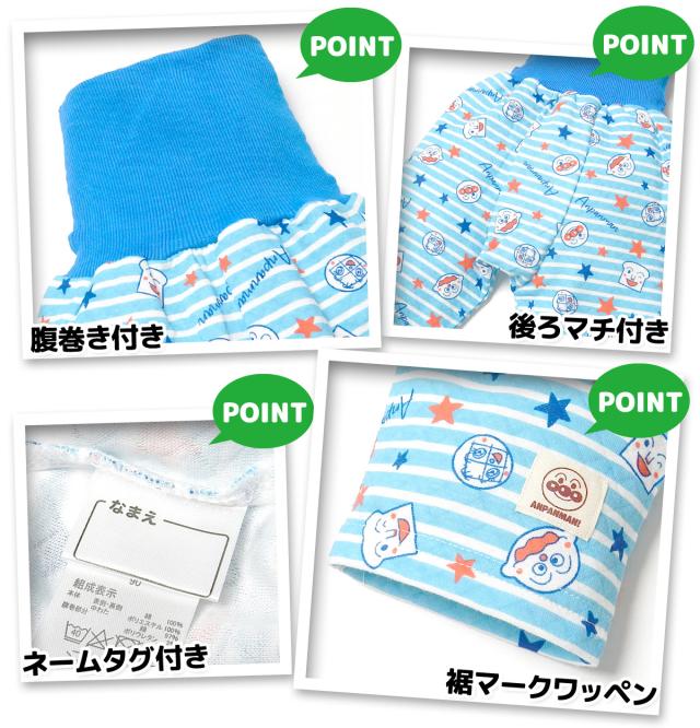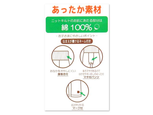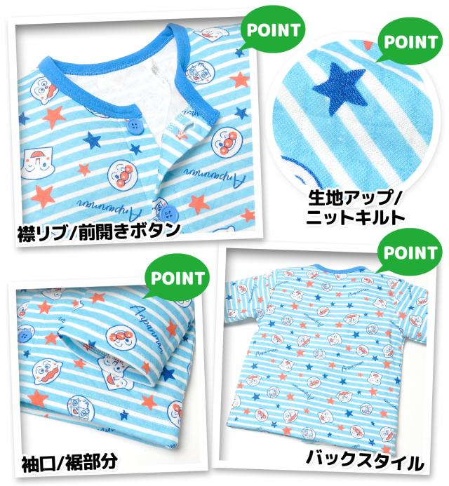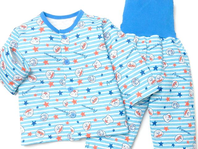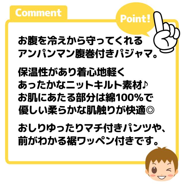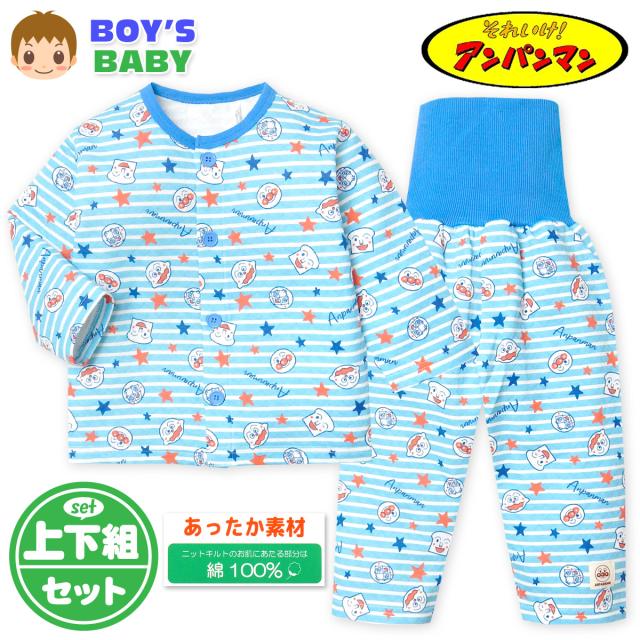【送料無料】男児 ベビー 腹巻付 長袖 パジャマ ニットキルト アンパンマン あったか 上下組 前開き iw-0934【メール便対応】