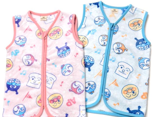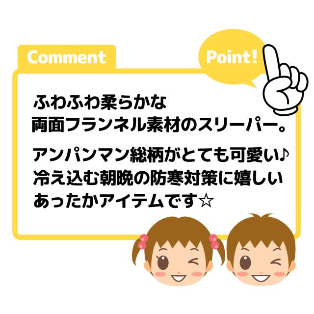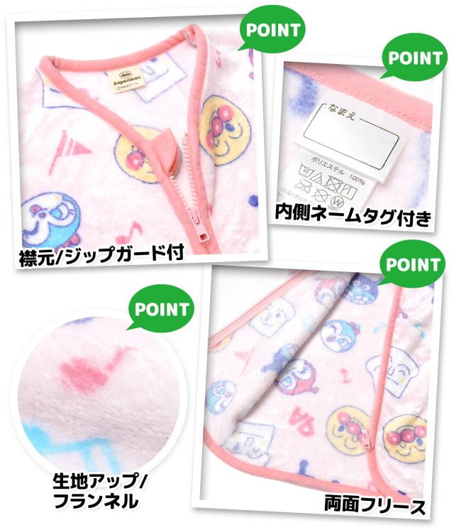 【送料無料】男児 女児 ベビー フランネル スリーパー ベスト アンパンマン 小 あったか 防寒 前開きジップ iw-0952【メール便対応】