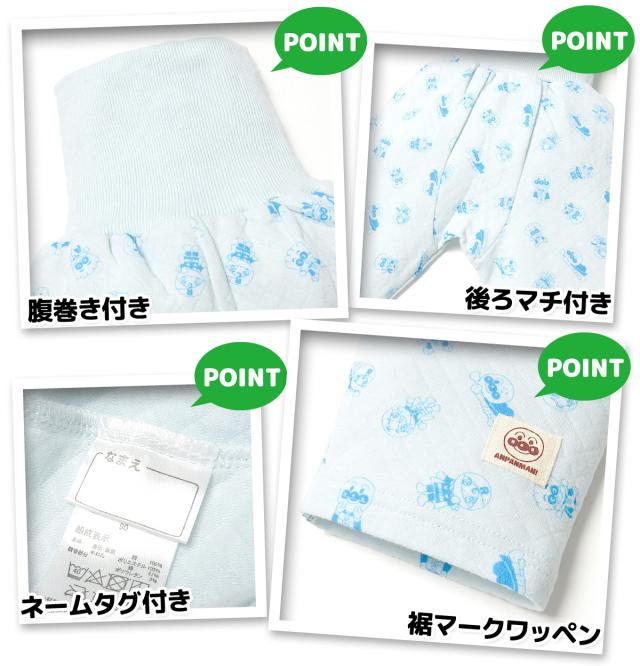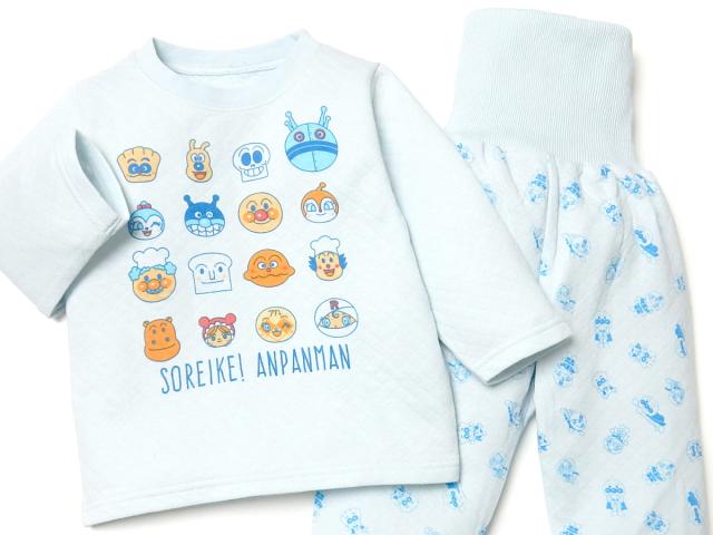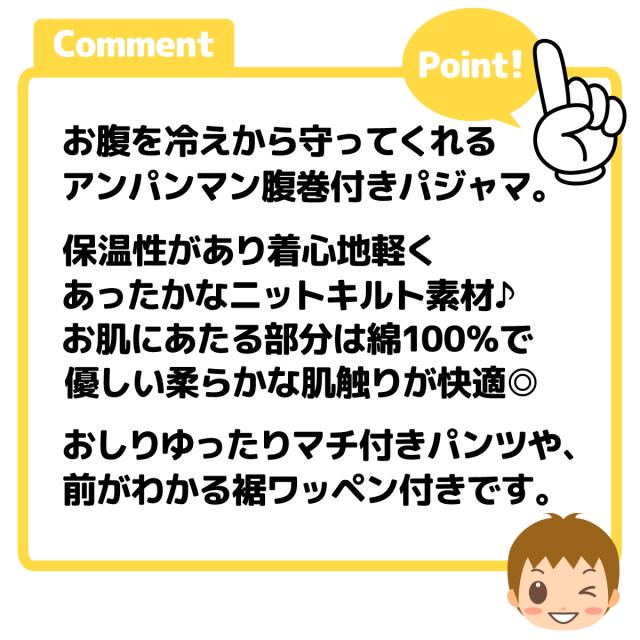 【送料無料】男児 ベビー 腹巻付 長袖 パジャマ ニットキルト アンパンマン あったか 上下組 iw-0927【メール便対応】